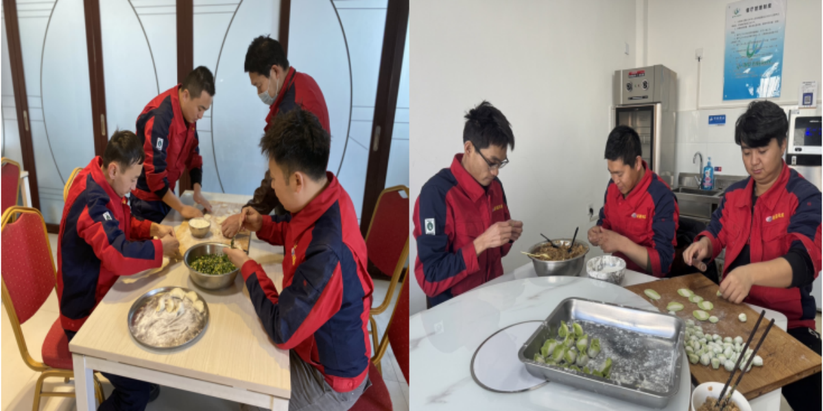 活動最后,大家一塊來到食堂,共同準(zhǔn)備除夕夜豐盛的年夜飯,在場職工們個個打起精神來,干勁十足,各自領(lǐng)了任務(wù)開始忙活起來,拿案板剁肉、切菜、和面,大家你一言我一語說著,笑著,食堂的歡笑和香味一起飄出場站。大家歡聚一堂共享除夕盛宴,共同舉杯祝福新春。