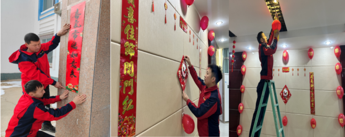 為了營造喜慶、祥和的節(jié)日氣氛,大家齊心協(xié)力為電站換上了“龍年新裝”,大家一起動手,打掃場站衛(wèi)生、貼對聯(lián)、貼福字、掛燈籠,張燈結(jié)彩、好不熱鬧,陣陣笑聲中散發(fā)出溫馨喜悅迎新春的氛圍。
