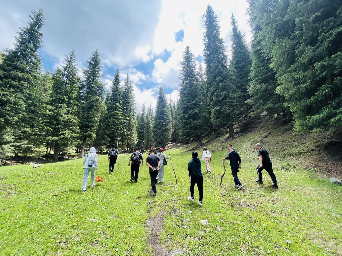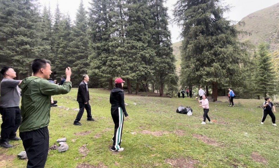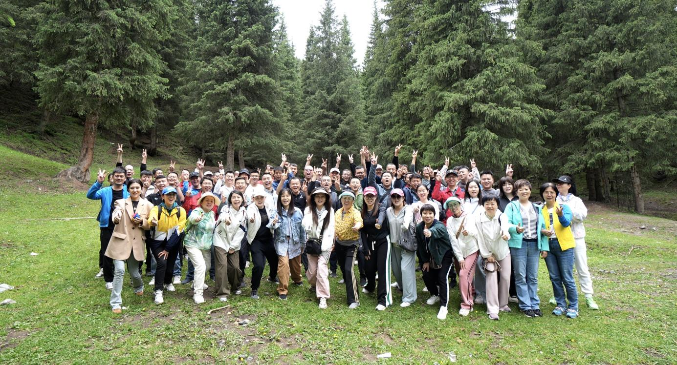 天山草場草色如茵、綠意盎然,如畫的風(fēng)景令人心曠神怡。大家健步走在徒步大道上,呼吸著新鮮的空氣,感受著大自然的風(fēng)光。一路上,大家邊走邊聊,時而駐足欣賞,時而選景拍照,歡歌笑語如影隨形。本次徒步行程近5公里,大家互相鼓勵、一往無前,經(jīng)過一個半小時的努力,終于順利抵達目的地。
