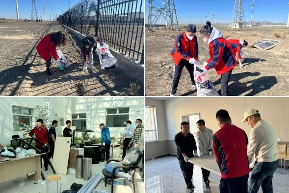 活動(dòng)通知一經(jīng)發(fā)布,公司各黨支部積極響應(yīng),全體黨員對(duì)活動(dòng)展現(xiàn)出極高的熱情。25日下午,公司黨員干部精神飽滿地集合出發(fā),前往達(dá)坂城風(fēng)電場。到達(dá)目的地后,所有人分成兩組,分別對(duì)場站內(nèi)部和外部進(jìn)行清潔。大家分工明確、干勁十足,對(duì)場站內(nèi)部的桌椅、設(shè)備進(jìn)行規(guī)整、清潔,對(duì)場站周邊的垃圾、石塊等進(jìn)行全面掃除,不放過任何一個(gè)清潔死角。十月的戈壁寒風(fēng)呼呼作響,但寒冷的天氣澆不滅火熱的心,大家熱火朝天地打掃著場區(qū)的衛(wèi)生,用一次次彎腰踐行著“生態(tài)優(yōu)先、綠色發(fā)展”的理念,使場區(qū)環(huán)境煥然一新,忙碌的身影形成了一道靚麗的風(fēng)景線。活動(dòng)的最后,大家合影留念,記錄下了這一難忘的時(shí)刻。