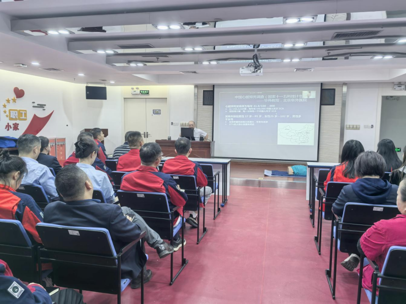 講座中,趙醫(yī)生首先聚焦心肺復(fù)蘇(CPR)急救知識和自動體外除顫儀(AED)的使用技巧進(jìn)行詳細(xì)講解。通過生動的案例分析和現(xiàn)場實(shí)操互動,讓理論知識轉(zhuǎn)化為可操作的技能。在心肺復(fù)蘇演示環(huán)節(jié),趙醫(yī)生邀請現(xiàn)場員工借助模擬人教具,親身實(shí)踐胸外按壓和人工呼吸操作。“按壓深度要達(dá)到5—6厘米,頻率保持在每分鐘100—120次。”趙醫(yī)生一邊示范標(biāo)準(zhǔn)動作,一邊糾正員工按壓時(shí)的手勢和力度。在AED使用教學(xué)中,趙醫(yī)生結(jié)合模擬設(shè)備,對設(shè)備操作流程進(jìn)行全流程拆解,從開啟電源、粘貼電極片到依照語音提示實(shí)施除顫,每個(gè)步驟都進(jìn)行了細(xì)致入微的演示。這種沉浸式實(shí)操互動模式,讓員工們直觀掌握了急救要點(diǎn),現(xiàn)場學(xué)習(xí)氛圍熱烈濃厚。實(shí)用的急救知識使員工們具備了應(yīng)對突發(fā)狀況的能力,為守護(hù)生命安全構(gòu)筑了堅(jiān)實(shí)屏障。