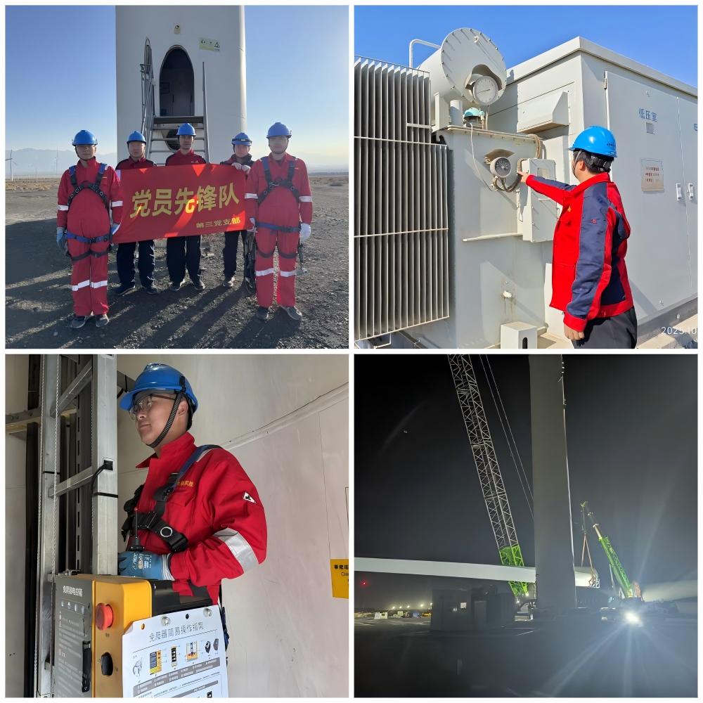 活動中,黨員突擊隊(duì)直奔工作現(xiàn)場,聚焦電力保障核心任務(wù)分片行動。在風(fēng)機(jī)檢修區(qū)域,黨員技術(shù)骨干帶頭拆解故障部件,逐項(xiàng)排查電氣、機(jī)械等關(guān)鍵部位,憑借豐富經(jīng)驗(yàn)快速定位問題并完成修復(fù),確保風(fēng)機(jī)恢復(fù)穩(wěn)定運(yùn)行;變電站內(nèi),黨員們按照巡檢清單,對站內(nèi)設(shè)備進(jìn)行全方位“體檢”,仔細(xì)記錄儀表數(shù)據(jù)、檢查設(shè)備溫升情況,不放過任何一處安全隱患;在風(fēng)機(jī)吊裝作業(yè)現(xiàn)場,黨員監(jiān)督員全程堅(jiān)守,確保每一個環(huán)節(jié)都符合安全標(biāo)準(zhǔn),為吊裝作業(yè)保駕護(hù)航。