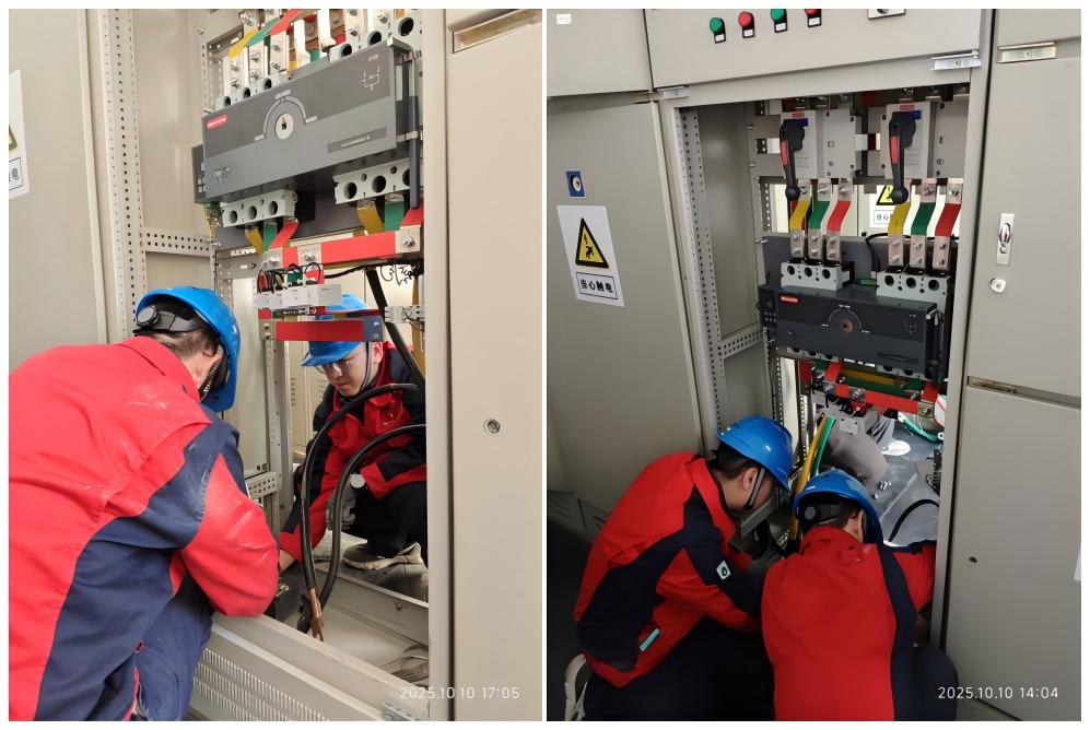 施工過程嚴(yán)格依照預(yù)定計劃有序開展。運(yùn)維人員首先對兩路380V交流電源進(jìn)行停電操作,隨后拆除原柜體及連接線,緊接著快速完成新配電柜安裝、母排與電纜接線,并同步對ATS裝置進(jìn)行調(diào)試。整個施工過程僅停電6小時,未對場站正常運(yùn)行及機(jī)組出力造成任何影響。